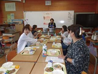 子どもたちの給食準備の様子や給食室の様子を見ていただいたり、.栄養教諭のお話を聞いたりと充実した時間となりました。「子どもがあまり朝ご飯を食べない」というお悩みには、「朝だけでなく、1日また1週間・・・とトータルして見ることも必要。」だと教えていただきました。