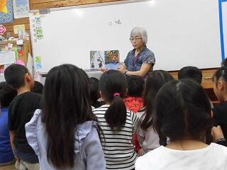 1・2年生は、興味津々で耳を傾けたり、「それはからすやっちゃね~?」と絵本に入り込んで読み手や友達と話題にしたり、楽しそうでした。