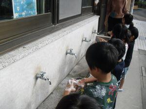 今日1年生は、宮崎市食品衛生協会の方々をお招きして、手洗い教室を実施しました。手洗いの必要性・手洗いの仕方・手洗いチェッカーを使った手洗いの実践等、1年生の【あやっ子】は、おねがい洗い・かめ洗い・やま洗い・バイク洗い・おおかみ洗い・つかまえた洗いという手洗いの仕方を知り、爪の間や指と指の間をしっかり洗うことの必要性を学んだ1時間になりました。宮崎市食品衛生協会の皆様、分かりやすい御指導に感謝致します。誠にありがとうございました。