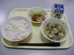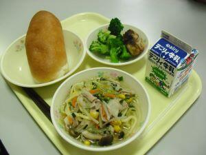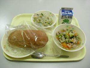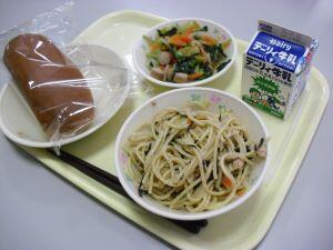 今日の献立は【黒糖パン・田舎風スパゲティ・小松菜とウインナーのソテー】でした。田舎風スパゲティは醤油味で、豚肉とマグロの水煮が入ったスパゲティで、とても美味しかったです。今回のふるさと綾産食材の生産者の方々は、「小松菜」が割付地区の福重さん、「しめじ」が古屋地区の宮崎産業さんでした。今週も美味しい給食でスタートです。ありがとうございました。