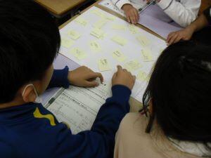 今日4年生は、総合的な学習の時間がありました。川の上流よりも下流が汚れている原因について、自分たちなりに考えたことをグループでまとめ、キーワードをつける取組をしていました。同じ意見は付箋紙を重ね。似たような意見は近くに貼り、友達と話し合いながらキーワードを決める4年生の【あやっ子】でした。今後、綾町の「水」のために、自分に何ができるかを考え、実践する活動へと繋がっていきます。