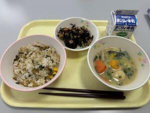 今日の献立は【麦ご飯・石狩汁・五目きんぴら】でした。「石狩汁」で身体が温まり、「五目きんぴら」はご飯がすすむ味付けで、とても美味しかったです。そして本日は、【民生児童委員・見守り隊の方へのお礼の会】を行う日であったので、皆さんに感謝の気持ちを込めて給食を試食して頂きました。「美味しい給食ですね。ありがとうございます。」との感想も頂きました。【民生児童委員・見守り隊の皆様いつも子どもたちを支えてくださりありがとうございます。それでは、本日のふるさと綾産食材の生産者の方々を紹介します。米は揚町地区のJA綾町さん、こんにゃくは宮原地区の大山食品さんでした。今日も美味しい給食ありがとうございました。