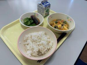 20日(水)の献立は【麦ご飯・サツマイモのゴマ味噌汁・チキン南蛮・添えキャベツ】21日(木)は【麦ご飯・マーボー大根・バンサンスウ】でした。チキン南蛮はタルタルソースがないタイプですが、甘酢たっぷりでとても美味しかったです。マーボー大根は、豆腐の代わりに大根が小さくサイコロ状に切ってあり、大根に味が染みて、こちらもとても美味しかったです。2日間のふるさと綾産食材の生産者の方々は、米は揚町地区のJA綾町さん、サツマイモは久木野地区の郡さん、小松菜は割付地区の福重さん、きゅうりは立町地区の森久保さん、ニラは中堂地区のほとくり会さんでした。美味しい食材・美味しい調理いつもありがとうございます。