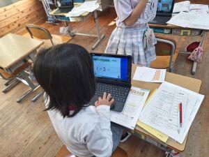 今日6年生は、国語の学習で文章構成を考える内容に取り組んでいました。それぞれが興味をもった日本文化について、図書の本やタブレットを使って調べ、文化のよさが伝わるような文章構成を考えていました。和食の「おにぎり」だったり、「餅」だったり、「能」だったりと日本の文化の良さを調べて、ワークシートにまとめる6年生の【あやっ子】でした。