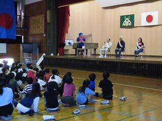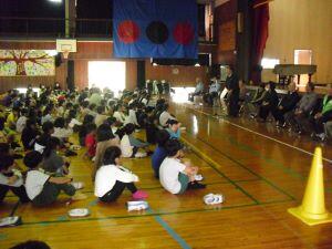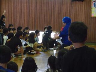 3時間目の学級懇談会の時間、子どもたちは体育館で観劇をしました。この日のために、「劇団220」の方が6名来校し、子どもたちをワールドに引き込んでくださいました。終始子どもたちは、笑顔で拍手をしたり歌を歌ったり。素晴らしい時間をすごすことができました。