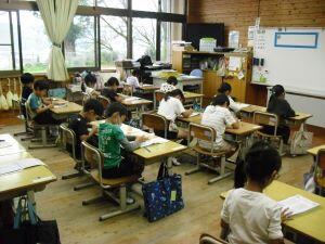 今日1年生は算数、3年生は外国語活動、5年生は理科の学習がありました。1年生は繰り下がりのある引き算をドリルを使って練習をしていました。「15-6は、5から6は引けないので10から6を引いて4、4と5を合わせて9」というように言葉を唱えながら計算をしていました。3年生は外国語活動で英会話のフレーズを専科の先生の後に復唱していました。リズムに乗って元気よく復唱する3年生でした。5年生は理科の学習で、振り子の実験をする前の準備をしていました。振り子を、一定のリズムに合わせて振れるようにするにはどうすればよいか、実際に体験しながら考えていました。