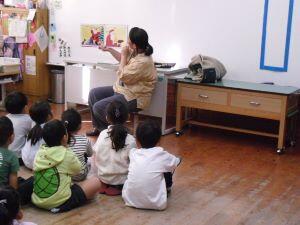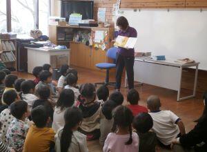 今日も「絵本の会まんまる」さんから4名の方々が来校し、読み聞かせをしてくださいました。