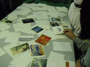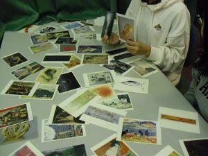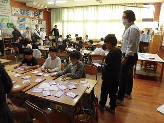 本日6年生は、「旅する美術教室」がありました。この教室は、現在「てるは図書館」で開催されている「旅する美術館」の近隣の学校で、楽しい造形体験や美術鑑賞等を行うものです。まず、たくさんの美術作品のカードから似ている2つのものを選び、理由を述べてグループの全員が納得したらカードをゲットできるマッチングゲームで楽しみました。次に、代表一人が誰にも言わずカードを選び、他のメンバーからの質問に「イエス」か「ノー」で答え、その答えから選んだカードを当てる「わたしは名探偵」で楽しみました。楽しみながら、たくさんの美術作品を知る【あやっ子】でした。講師をして頂いた宮崎県立美術館の方々に心よりお礼申し上げます。本日は誠にありがとうございました。