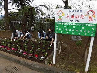 この秋にも「人権の花」を届けていただき、6年生が朝のボランティア活動で植栽しました。