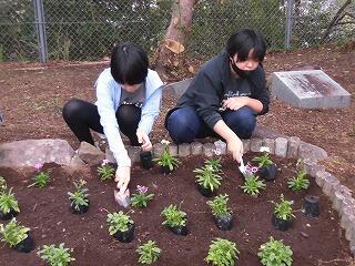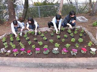 これからの季節にふさわしいシクラメンやビオラ、パンジー、撫子が、きれいに花壇に植えられました。