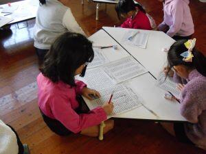 今日2年生は算数の学習がありました。【かけ算九九マスター】目指して、2年生一人一人が自分のペースで学習を進めています。マスターになるためには、「なぞのナインピース」を集めなければなりません。なぞのナインピースは9人の先生達がもっています。9人の先生に挑戦して【かけ算九九マスター】になる日が楽しみな2年生の【あやっ子】でした。