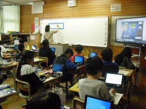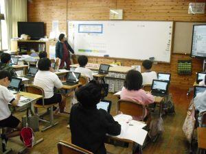 今日3年生は社会の学習で「ふるさと綾」について学んでいました。デジタルマップを見ながら、綾北川や綾南川を確認する3年生でした。それぞれの地域でよく栽培されている農作物についても確かめる3年生でした。