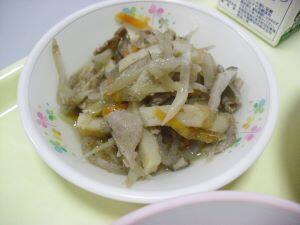 今日の献立は【麦ご飯・豚汁・ジャガイモと魚の青のりがらめ】でした。ジャガイモと魚の青のりがらめは、絶妙な塩加減でとても美味しく、綾ぶどう豚の入った豚汁との相性もバッチリでした。今日もご飯がモリモリすすみました。それでは本日の綾町食材の生産者の方々を紹介します。有機米が揚町地区のJA綾町さん、にんじんが杢道地区の爰野さん、ネギが割付地区の福重さん、綾ぶどう豚が揚町地区のJA綾町さんでした。今日も新鮮で美味しい食材、美味しい調理ありがとうございました。