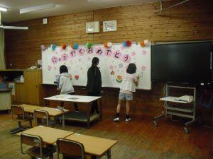 今日は、明日の入学式にむけて6年生が準備を行いました。式会場の体育館や教室がかわいくきれいに仕上がりました。新入生のみなさん、保護者の皆様、明日の入学式を心待ちにしています。天気も良さそうです!!大歓迎でお待ちしています!!
