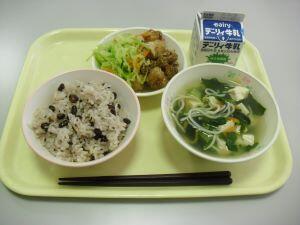 本日、入学式日の「お祝い献立」を紹介します。献立は【赤飯・魚そうめん汁・魚の変わり揚げ・添え野菜】で、入学式を祝う御馳走献立でした。とても美味しくて大満足でした。それでは今回の綾町食材の生産者の方々を紹介します。有機米は揚町地区のJA綾町さん、にんじんは杢道地区の爰野さん、キャベツは揚町地区の西郷さん、小松菜とねぎは揚町地区の西郷さんでした。今日も新鮮で美味しい食材・美味しい調理ありがとうございます。