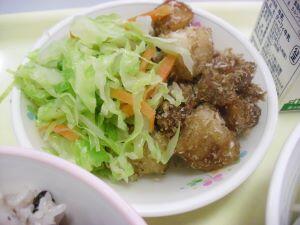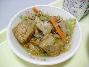 今日の献立は【麦ご飯・もずくスープ・厚揚げの甘辛炒め】でした。今日は少し寒かったので、もずくスープは身体が温まり、具沢山で大満足でした。そして、厚揚げの甘辛炒めの美味しい味付けで、ご飯がどんどんすすみました。それでは本日の綾町食材の生産者の方々を紹介します。有機米が揚町地区のJA綾町さん、にんじんが杢道地区の爰野さん、キャベツが揚町地区の西郷さん、ねぎが割付地区の福重さん、えのきたけが古屋地区の宮崎産業さん、長ネギが神下地区のかなえ農園さんでした。今日も新鮮で美味しい食材、美味しい調理ありがとうございました。