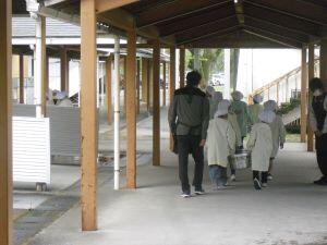 今日は、給食コンテナ室での給食当番の活動を紹介します。スタートは、お盆(トレイ)当番の子どもたちが、給食コンテナ室にお盆(トレイ)を取りに来ます。その後、給食当番の子どもたちがそれぞれの食缶を取りに来ます。毎日の活動に、しっかりと取り組んでいる各クラスの給食当番です。いつも準備・片付けありがとう!!