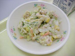 今日の献立は【チーズパン・スパゲティナポリタン・春野菜のソテー】でした。今日は給食時間の放送内容を紹介します。『スパゲティナポリタンは、スパゲティなので、イタリア料理と思われがちですが、実は、トマトケチャップで味付けした日本独自のスパゲティのことです。昭和20年代に横浜のホテルで考えられたと言われています。綾小学校でもとても人気の高いメニューの一つです。美味しくいただきましょう。』それでは本日の綾町食材の生産者の方々を紹介します。にんじんが杢道地区の爰野さん、キャベツが揚町地区の西郷さん、しめじが古屋地区の宮崎産業さんでした。今日も新鮮で美味しい食材、美味しい調理ありがとうございました。