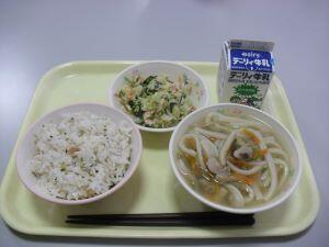 昨日10日(木)の献立は【麦ご飯・春雨スープ・鶏肉とゴーヤの揚げ煮】本日11日(金)は【鮭菜飯・五目うどん・彩和え】でした。鶏肉とゴーヤの揚げ煮はゴーヤがカリッと揚がっていて鶏肉との相性がとても良かったです。五目うどんは出汁の味と具材の鶏肉・にんじん・ゴボウ・油揚げ・しいたけ・ねぎ・うどんの味がよく絡みとても美味しかったです。それでは2日間の綾町食材の生産者の方々を紹介します。にんじんが古屋地区の園田さん、じゃがいもが久木野地区の郡さん、ゴーヤが古屋地区の石神さん、ネギが宮ノ谷地区の柿本さん、ごぼうが杢道地区の爰野さん、きゅうりが立町地区の森久保さんでした。いつも新鮮で美味しい食材・美味しい調理ありがとうございます。