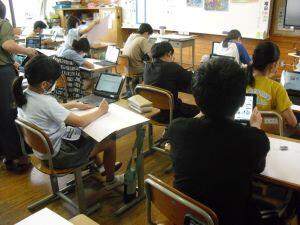 今日3年生は音楽の学習で、リコーダーを使って「虹色の風船」と「マジカル・シラソ」という曲を演奏していました。どちらの曲も指使いに気を付けながら、リコーダーのきれいな音で演奏する3年生でした。6年生は川をテーマにした絵を描いていました。タブレットを使って資料を探し、下書きに意欲的に取り組む6年生でした。