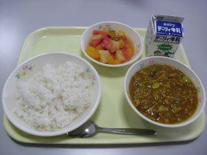 本日17日(木)1学期最後の献立は【キーマカレー・あやかちゃんフルーツ和え】でした。夏野菜たっぷりのキーマカレーと、綾町産の日向夏でできた「綾夏ちゃんジュース」を入れたフルーツ和えは、とても美味しく大満足でした。それでは、本日の綾町食材の生産者の方々を紹介します。にんじんが古屋地区の園田さん、じゃがいもが久木野地区の郡さん、かぼちゃが宮原地区の入船さん、しめじが古屋地区の宮崎産業さん、綾夏ちゃんジュースが綾ほんものセンターさんでした。今日も新鮮で美味しい食材・美味しい調理に感謝です。そして1学期間の美味しい給食に感謝です。給食に関係する全ての皆様、本当にありがとうございました。2学期もどうぞよろしくお願いいたします。