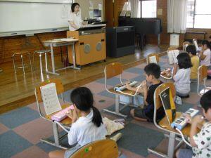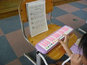今日2年生は、音楽の学習で「かえるのがっしょう」を鍵盤ハーモニカで演奏する活動に取り組んでいました。演奏の前には階名読みで歌を歌って準備していました。そして、演奏では「眠たいカエル」「めっちゃジャンプするカエル」「100m走をするカエル」というように、スピードとリズムを変えて楽しそうに指を動かす2年生でした。