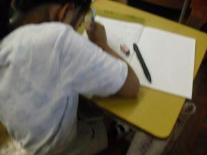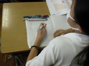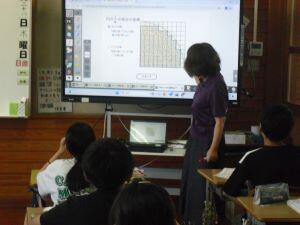 今日4年生と6年生は算数の学習がありました。4年生は2桁で割る筆算の仕方につなげるために、80÷20の計算の仕方を考えていました。80円は10円が8枚、20円は10円が2枚だから8枚÷2枚という一桁の計算をすればいいということに気づく4年生でした。6年生は円の面積について学んでいました。およその面積を求めるということで、円を4分の1に分け、1cmの方眼が何個分になるのかを見つけ、それを4倍する考え方を確認する6年生でした。