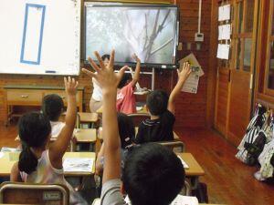 今日1年生は国語、5年生は社会の学習がありました。1年生は写真の中にかくれている昆虫を見つける活動をしていました。擬態して見つけにくい昆虫をすぐに探し出す1年生でした。5年生は社会の学習で食料生産をめぐる問題について考えていました。地球温暖化や食料自給率についてグラフをもとに調べ確認する5年生でした。