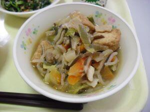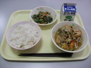 今日の献立は【麦ご飯・わかめスープ・チャプチェ】でした。今回は給食時間の放送内容を紹介します。『今日は、韓国料理の献立です。どちらにもごま油を使っています。ごま油は、炒ったごまから油を取り出しています。香りがいいので、スープにも香りづけに使っています。とり過ぎなければ、体にいい油です。味わっていただきましょう。』でした。それでは本日の綾町食材の生産者の方々を紹介します。米が有機米でアヤオーガニックワークスさん、えのきたけが古屋地区の宮崎産業さん、にんじんが久木野地区の郡さん、長ネギが杢道地区の爰野さんでした。今日も美味しい食材・美味しい調理ありがとうございました。