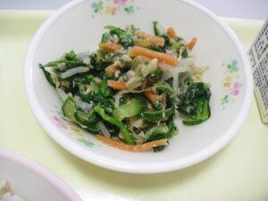今日の献立は【あおさご飯・山菜うどん・白身魚のフライ・ミニトマト】でした。あおさご飯には豚肉がアクセントとして入っていて、青のり粉の味に甘辛さが加わってとても美味しかったです。山菜うどんとの相性も最高でした。それでは本日の綾町食材の生産者の方々を紹介します。米が有機米でアヤオーガニックワークスさん、にんじんが久木野地区の郡さん、長ネギが杢道地区の爰野さんでした。今日も美味しい食材・美味しい調理ありがとうございます。