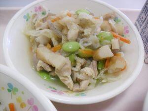 今日の献立は【七草寿司・魚そうめん汁・千切り大根の炒め煮】でした。1月7日には七草をおかゆに入れて食べる習慣があります。1年を健康に過ごすことができるように願って食べるものですが、今日は子どもたちの健康を願い七草寿司のメニューになったそうです。魚そうめん汁と千切り大根の炒め煮と併せて、大御馳走の給食でした。それでは本日の綾町食材の生産者の方々を紹介します。米が有機米でアヤオーガニックワークスさん、にんじんが久木野地区の郡さん、小松菜が割付地区の福重さん、千切り大根が中堂地区のほとくり会の皆さん、えのきたけが古屋地区の宮崎産業さんでした。今年も美味しい食材・美味しい調理ありがとうございます。