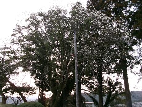 児童玄関前のハクモクレンの花が空に向かって気高く咲き始めています。