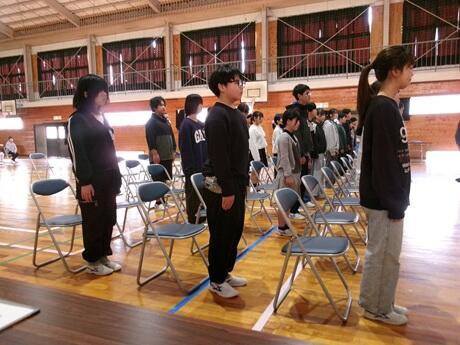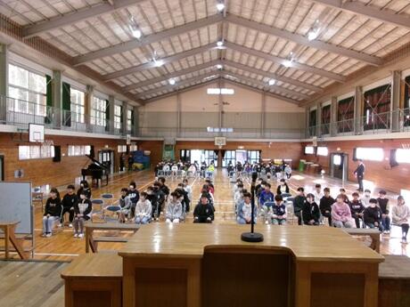 3月3日(火)には、6年生が体育館にて卒業式の練習を行っていました。
