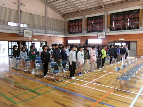 3月2日(月)には、全校集会をオンラインで行いました。校長先生の話では、清水英雄さんの「ありがとう」の詩を紹介し、感謝しながら前向きに生きていくことの大切さを伝えました。生徒指導主事の話もありました。