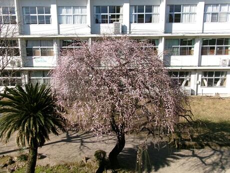 日南寒咲一号や河津桜、小室桜など、早咲のピンクの桜が見えます。