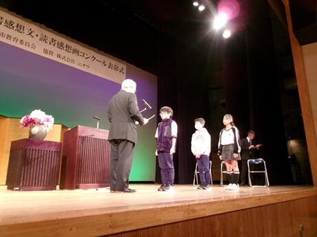2月6日(金)には、日南市文化センターにおいて日南市読書感想文・読書感想画コンクール表彰式が行われました。読書感想文の部で、3年男子が金賞、5年女子が銀賞、読書感想画の部で、6年女子が銀賞、5年女子が入賞となりました。