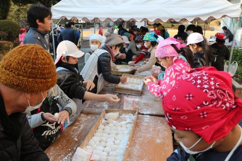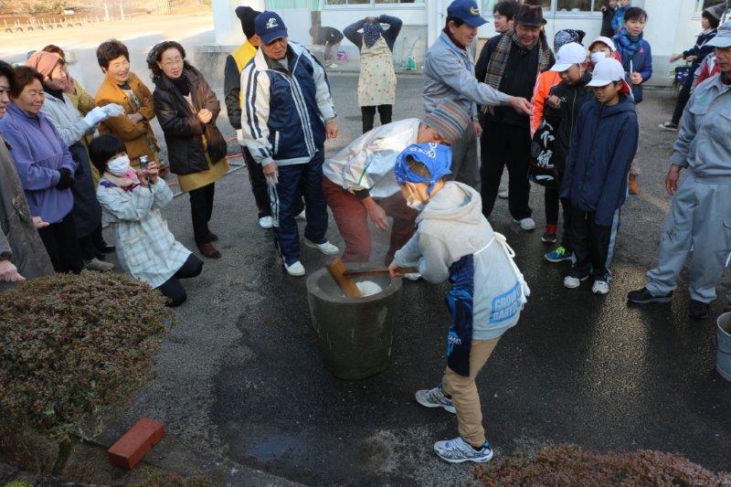 1月26日(火)に5年生が種から育てたもち米で、地域の方々の協力を得て、もちつきをしました。日本の伝統文化に触れると共に、収穫の喜びを味わいながら、つきたてのお餅にきなこや醤油をつけて、うれしそうに頬張っていました。