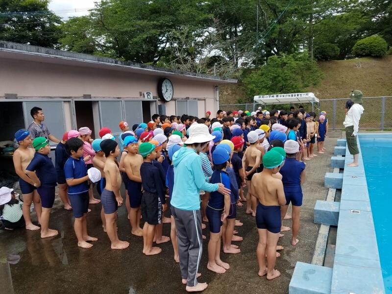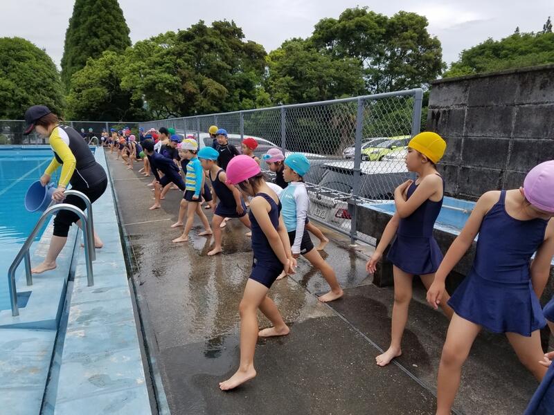 6月6日(火)に、各学年部ごとに「プール開き」を行いました。校長先生から、「①安全に十分気を付けて学習すること」「②昨年の自分より少しでいいから向上すること」のお話がありました。