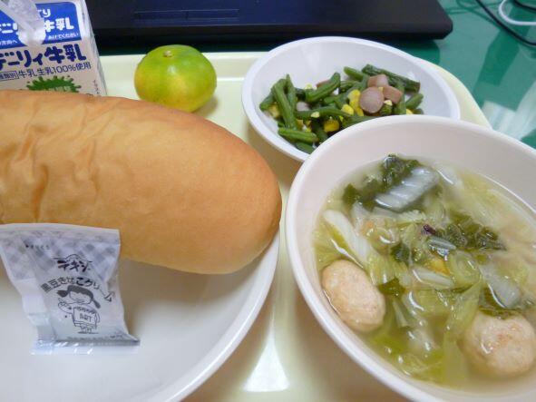 今日は「コッペパン、白菜と肉団子のスープ、インゲンとウインナーのソテー、みかん、黒豆きなこクリーム」でした。はやいもので今週も金曜日です。一日の日程も今週からは以前のように戻しています。今は昼休み時間です。運動場で遊ぶ子どもたちの声が聞こえています。来週もできる限り多くの子どもたちがいい顔で登校し、元気いっぱい活動してくれることを願います。
