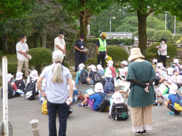 1~4年生は遠足です。そのうち2年生は4グループに分かれて飫肥の町を探検します。その引率として、今回も地域の方々にご協力をいただきました。職員と地域の方とで児童を引率しますので、とても心強いです。その中のお一人は、午前中がこの引率、午後は6年生への泰平踊りのご指導と一日ご協力をいただきます。ありがたい限りです。