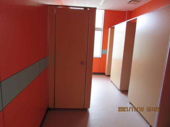 8月末から工事をしていた北校舎(体育館横)の1階2階トイレの改修が終了、先日から使用しています。全て洋式で鮮やかな壁面のトイレです。