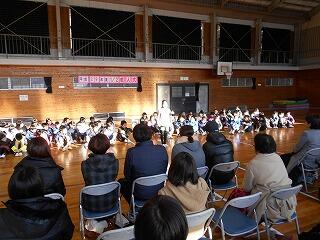 飫肥まちづくり推進協議会、つよし学園、学校支援地域ボランティア、PTA、保護者等、約30名の地域の皆様を御招待して行いました。