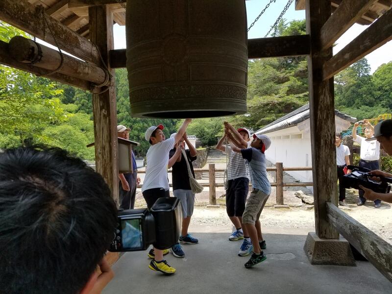 昨年度からは、この日に「酒谷小との交流会」も実施し、酒谷小児童も鐘を撞いています。