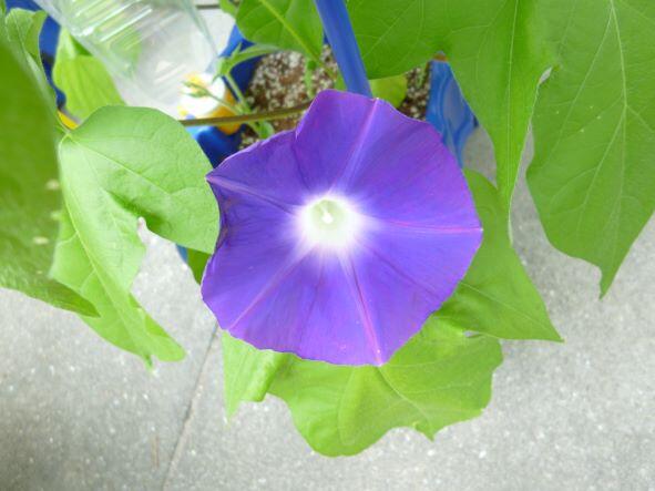 1年生の育てている朝顔の花が少しずつ咲き始めています。