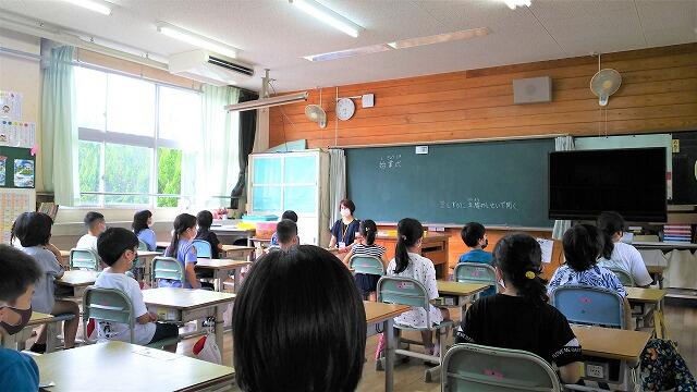 でした。給食は、ずいぶん以前からコロナウイルス感染予防のために全員が黒板(前面)を向いて食べています。歯磨きも蜜になりやすかったり、飛沫が飛びやすかったりするため、中止しています。検温も、今週までは登校時に玄関前で職員が一人一人の児童の体温を非接触型体温計で計っています。このような予防を継続しながら、状況が落ち着くのを待っているところです。