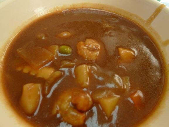 カレーには、当然のことながらえび、イカのシーフードが入っていました。あまり辛くないカレーでした。