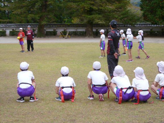 今、5年生が体育でタグラグビーを行っています。その指導に、市ラグビー協会から毎回来ていただいています。今日もお二人来ていただき5-1の指導をしていただきました。授業後には、多くの子どもたちが、「おもしろかった」と言っていました。いつもお仕事の合間に来ていただき感謝です。