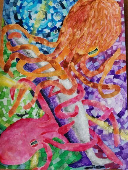 下の写真は宮崎県青少年読書感想画コンクールで2席をいただいた、6年の御園生愛羽さんの作品です。