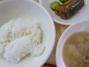 新米、さつま汁、サンマのみぞれに、キュウリ、牛乳