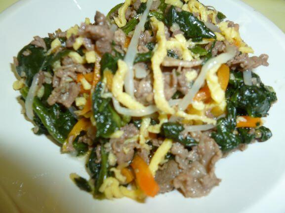 ビビンバ丼、牛乳、わかめスープ、麦ご飯